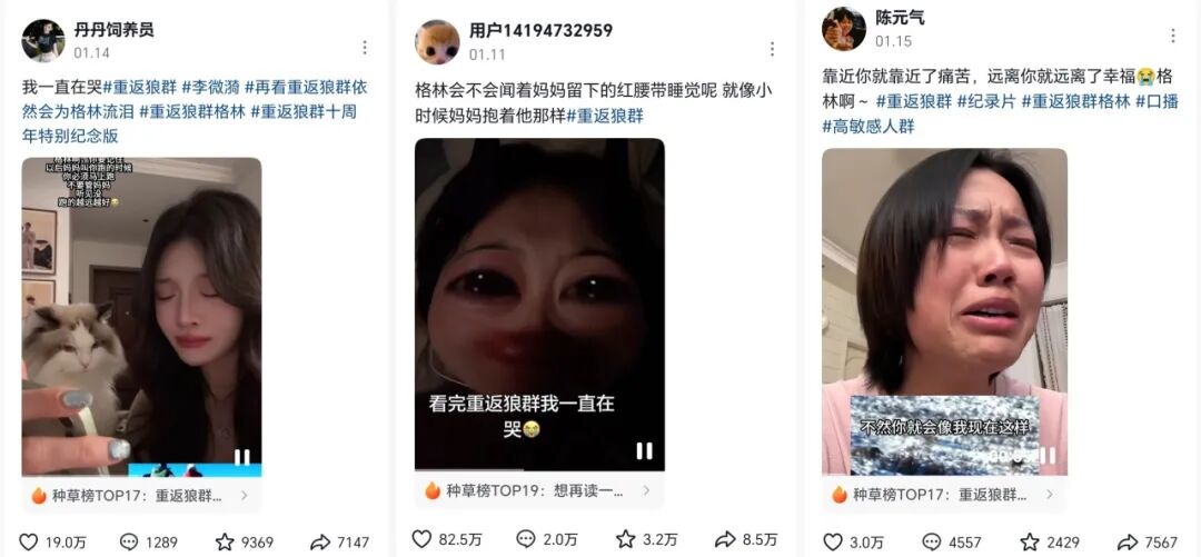 无论是年轻的学生群体、职场人士,还是关注野生动物保护的公益人士、喜爱纪录片的爱好者,都纷纷加入讨论行列,让《重返狼群》从一部小众纪录片变成了全民热议的现象级话题。相关话题先后登上抖音热榜、微博热搜,吸引了不同年龄层、不同圈层用户的关注。
