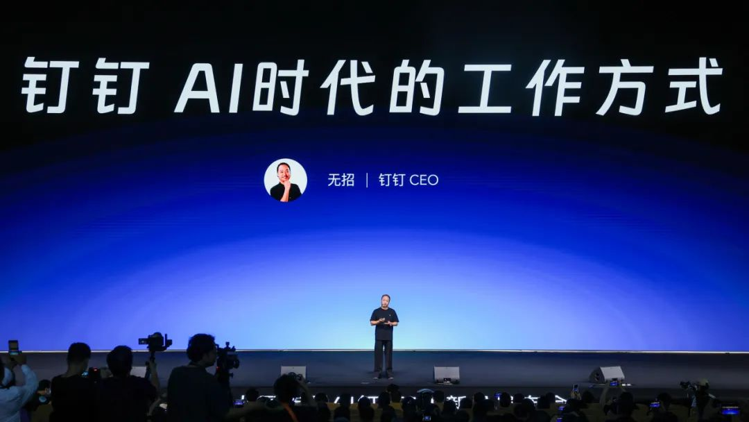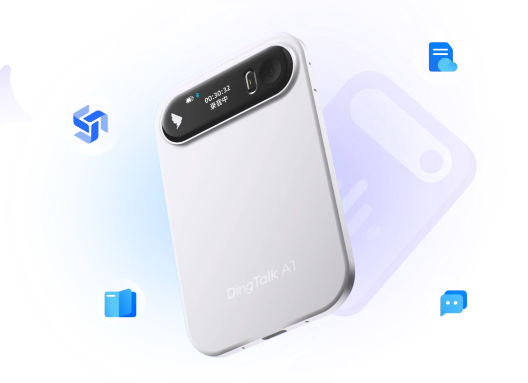 这个场合是无招回归钉钉后最重要的成果展示,他当时发布了全新 AI 钉钉1.0,而DingTalk A1 的角色定位是“首款 AI 硬件”。