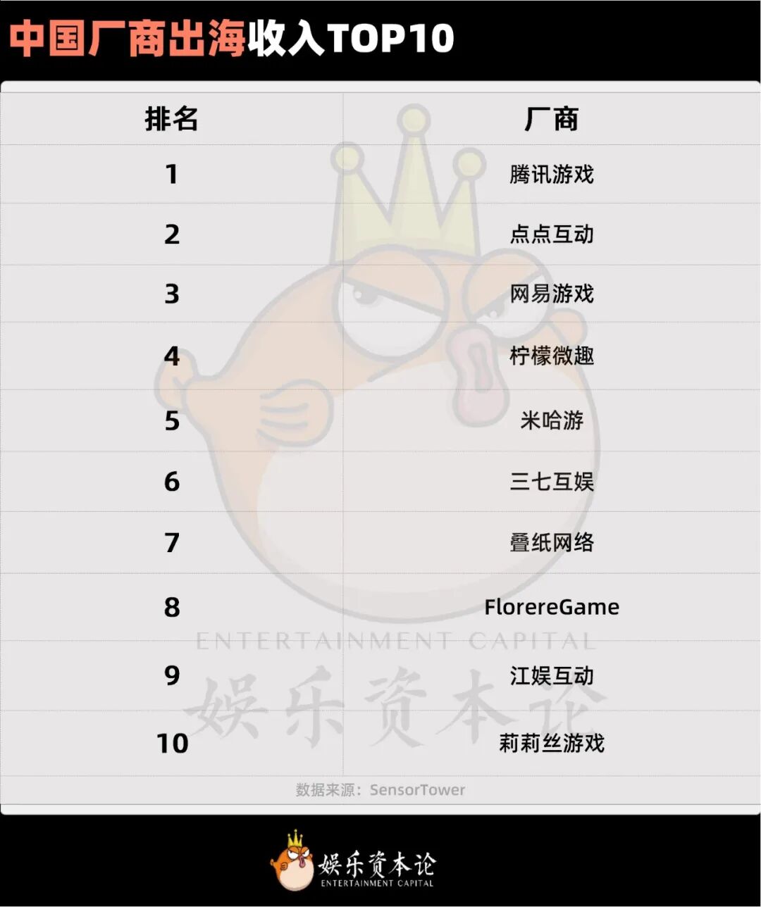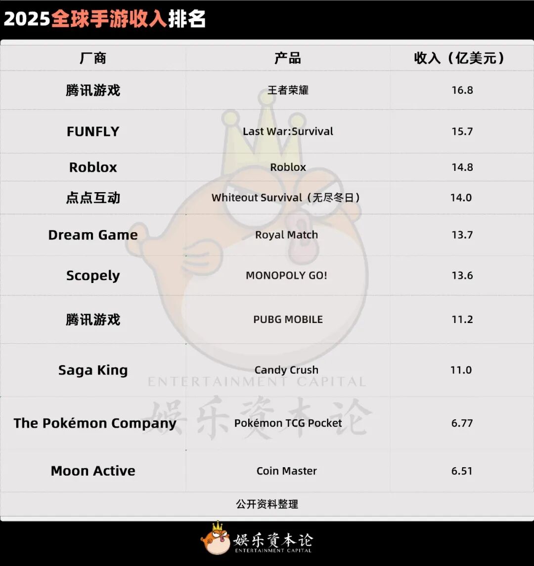 根据Sensor Tower,点点互动在2025年中国手游发行商收入榜位列第二,超越了“千年老二”网易游戏,仅次于腾讯游戏。