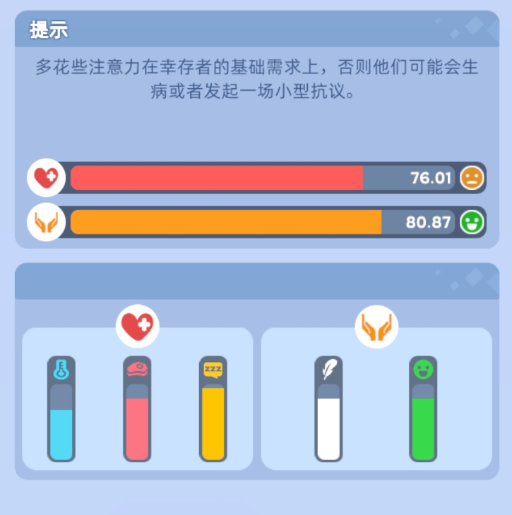“前期真的太像模拟经营了”,为了抵抗一次又一次的风雪,舒舒不停收集资源解锁更完善的医疗与保暖设备,看着营地里的小人儿能活下来,她心里的成就感也越来越强。甚至还有低龄玩家拿《无尽冬日》和《星露谷物语》做比较。