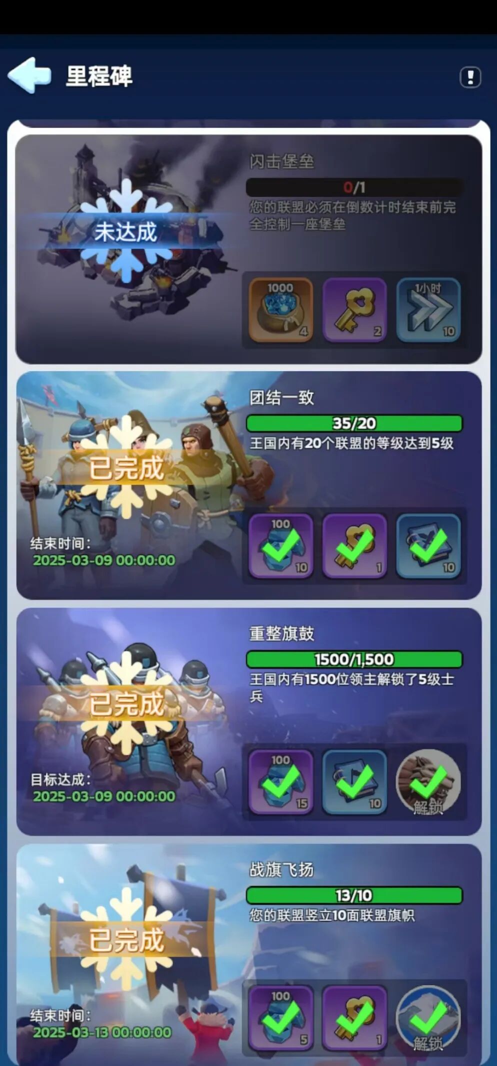 玩家二舅就是这样被《无尽冬日》锁死的。他原本也是因为好奇末日生存的题材踏入“万恶之门”,野外地图解锁、联盟功能开放后,原本想安静玩“单机”、无意社交的他,尽管隐约意识到不对,但看着游戏中“里程碑”界面必须靠加入联盟才能完成的成就,还是点下了“加入联盟”的按钮。