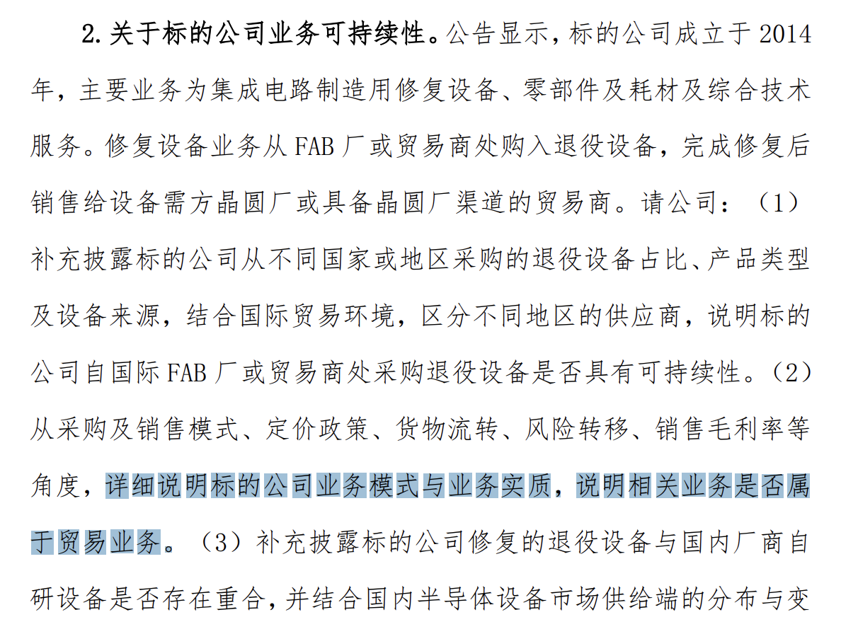 宇邦靠修复退役半导体设备赚钱,采购来源和可持续性都被交易所追问