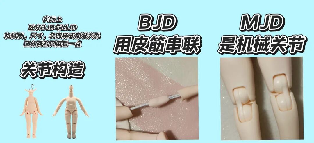 (对比图:BJD以球形关节为连接、“拉筋穿铝”支撑结构 @念玉)