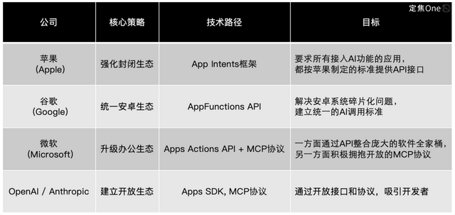 苹果最直接。它升级了“App Intents”框架,要求所有想接入AI功能的应用,都必须按照苹果制定的标准提供API接口。