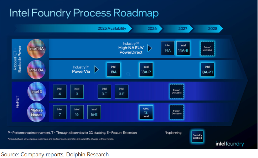 根据英特尔此前的工艺制程路线图,公司18A制程是如期量产,良率也达到市场“可接受”的水平(60%左右)。当前18A制程依然生产公司的自有产品,如果后续能对外部客户实现出货,才更能体现出公司的代工能力。