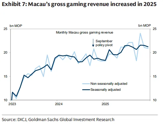 这种局部的火热还蔓延到了服务消费领域,比如2025年第四季度澳门的博彩总收入(GGR)表现就超出了市场预期,这与小Z那种“账户红了就去换车”的心理异曲同工,都是由一部分率先获利的群体所驱动的。