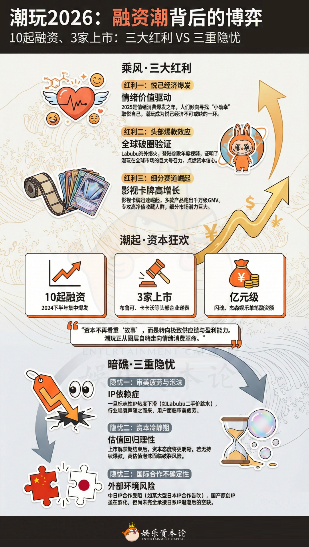 站在2026年的时间节点上,潮玩行业的融资热潮正经历着时间的考验。融资和上市信息依旧在紧锣密鼓地发布,而行业人士却开始担忧资本即将进入又一段冷静期。