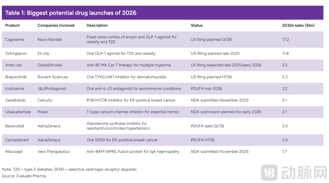 2026年最大潜力待上市药物(图源:Evaluate)