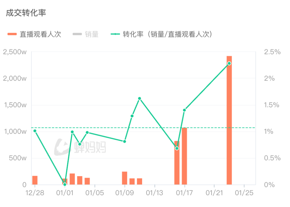 根据第三方数据平台蝉妈妈统计,这场时长仅 3 小时 59 分的直播,累计场观 2418 万,在线峰值达 45.5 万,不仅远超其日常直播水平,更在单日场观上超过了 “与辉同行”。