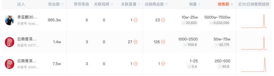此外,“亚鹏-优选推荐”“鹏哥好物推荐官”“鹏哥零食甄选推荐官”等多个授权账号粉丝也达到了十万左右。