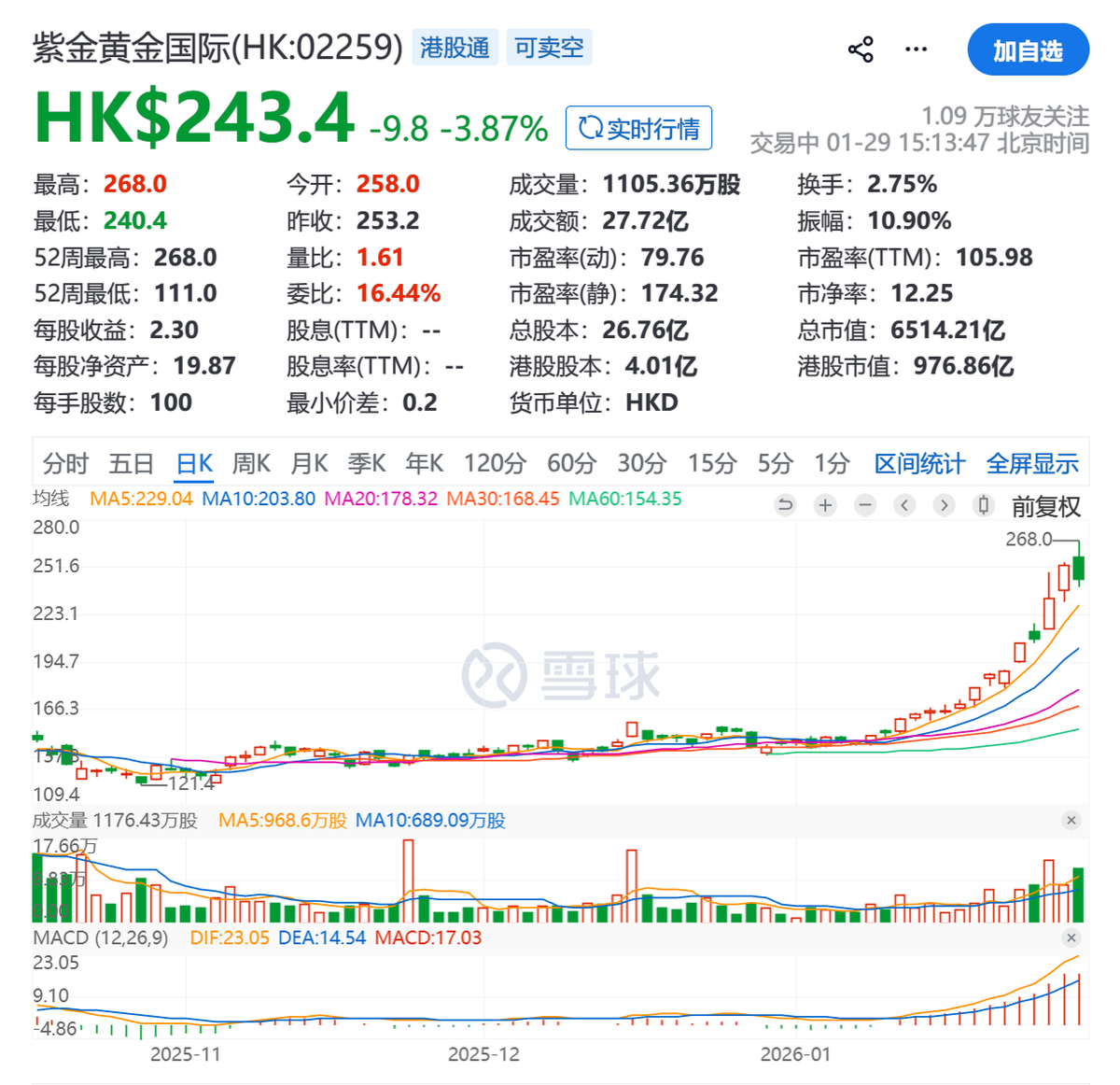 2025年9月,紫金把境外黄金矿山资产打包,单独分拆出紫金黄金国际在港股上市,募资287亿港元。这部分资产之前大概贡献集团利润的两成,当下大幅跟随黄金宏观上涨,市值已破6500亿。它无法完全反映到A股,但给了A股更强的支撑。