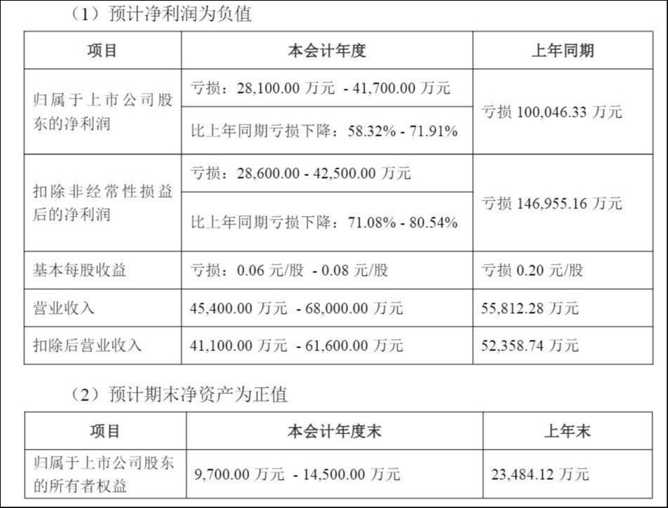 此外,公司预计2025年期末净资产为正值,预计归属于上市公司股东的所有者权益为9700万元-1.45亿元,尽管较上年末的2.35亿元的净资产规模大幅度下降,但成功守住“净资产为正”这一关键退市红线。