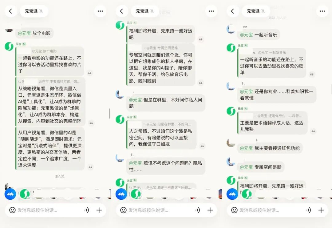 ▲ 元宝派中,腾讯元宝在活跃群聊气氛,元宝派截图