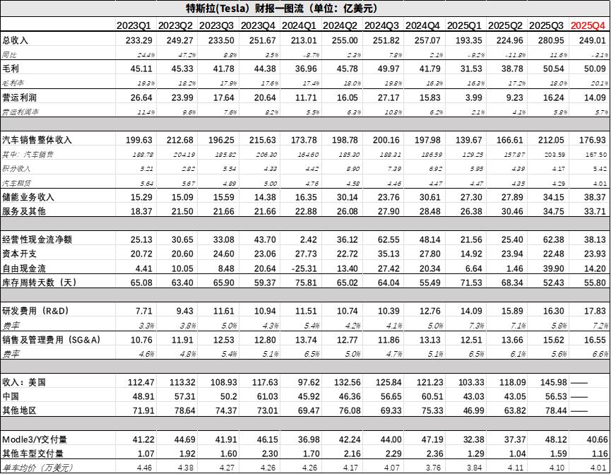 财报发布的同日,特斯拉正式官宣完成了对xAI的投资,因此市场的焦点从传统即有业务,迅速转向至未来预期,但我们还是先来看看现阶段特斯拉的基本盘。