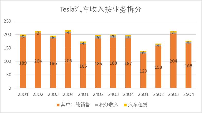 仅从财报的纸面数据来看,四季度特斯拉造车业务表现不好,但也符合预期,单季度营收录得177亿,同比下降了10.6%,主要的原因还是补贴退坡,导致三季度脉冲增长,后续需求必定疲软。