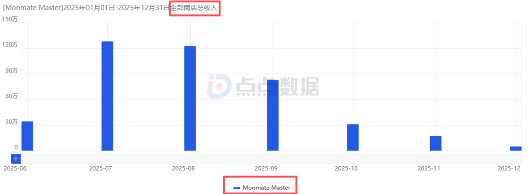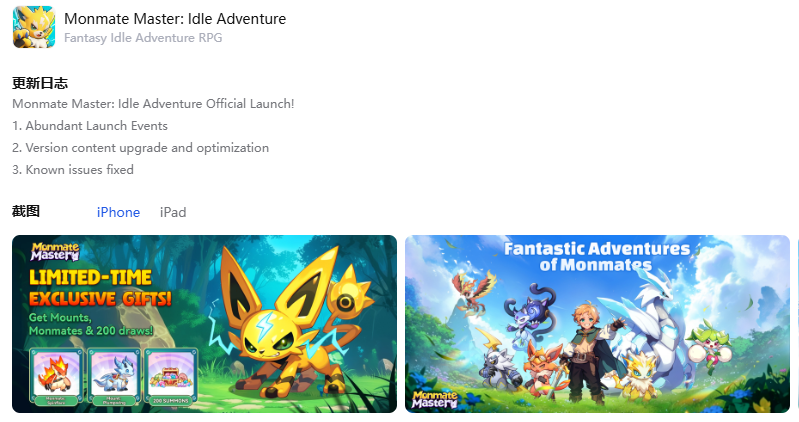 2025年初,其在海外测试了一款名为《Monmate Master: Idle Adventure》的帕鲁向放置RPG,同年6月游戏进行了一轮扩量测试,7月时其月流水来到了890万,但9月中下旬随着投放的收紧,相关数据也在快速下滑,目前月流水不足50万。