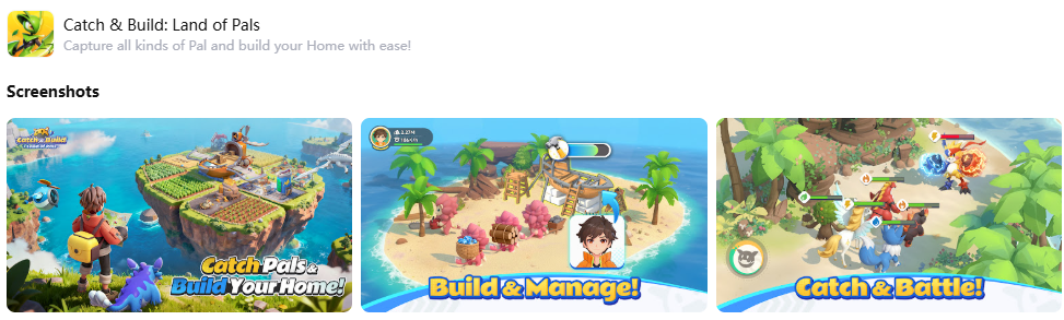 《Catch & Build: Land of Pals》(以下简称《Catch & Build》)引人关注,主要因为该作是4399旗下首款帕鲁SLG,目前其已经在多个国家及地区开启预约,预定页显示其大概会在今年2月8日左右上线APP Store。