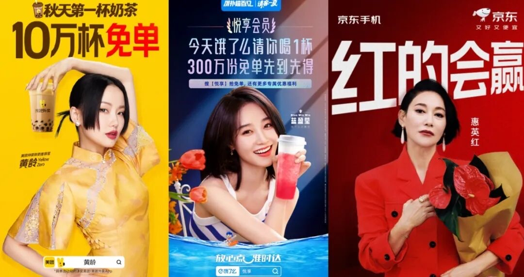 美团x黄龄、饿了么x蓝盈莹、京东x惠英红