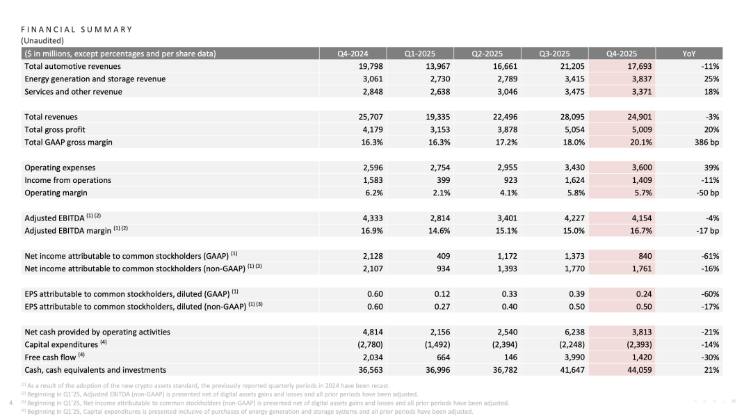 1 月 29 日凌晨,特斯拉对外公布 2025 年第四季度及全年财报。财报显示,当季特斯拉营收 249 亿美元,同比下降 3%,全年营收 948 亿美元,同比下降 3%。这是特斯拉成立以来首次年营收下滑。