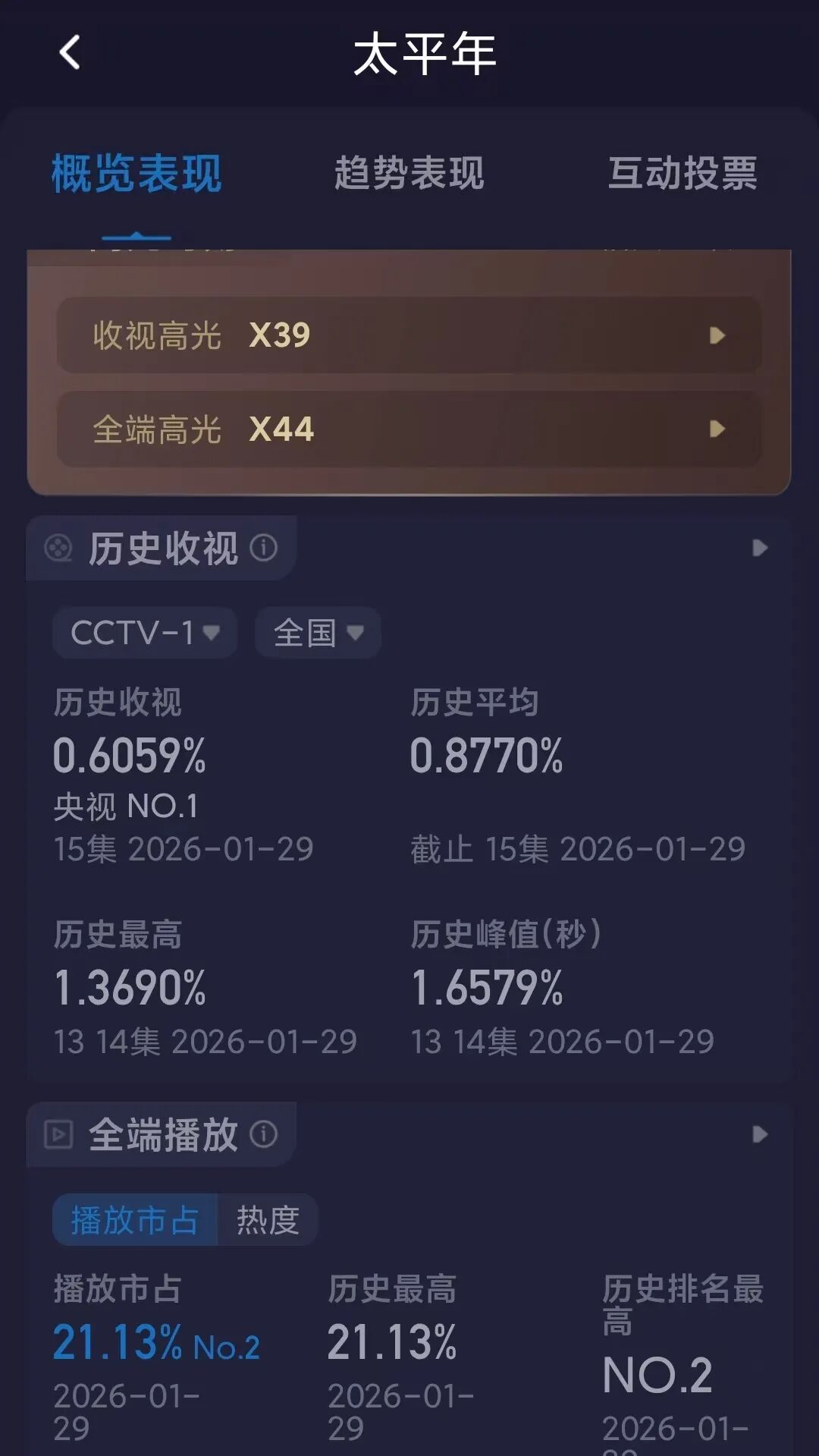 从市场反馈效果来看,该剧播出效果远不及预期,收视率开播即达峰值后便一路下滑,最终以1.08%收尾,创下央视一台历史新低;网播表现同样低迷,鹅厂热度勉强突破20000,桃厂、芒果的热度及播放量均处于低位,整体收视网播成绩惨淡。