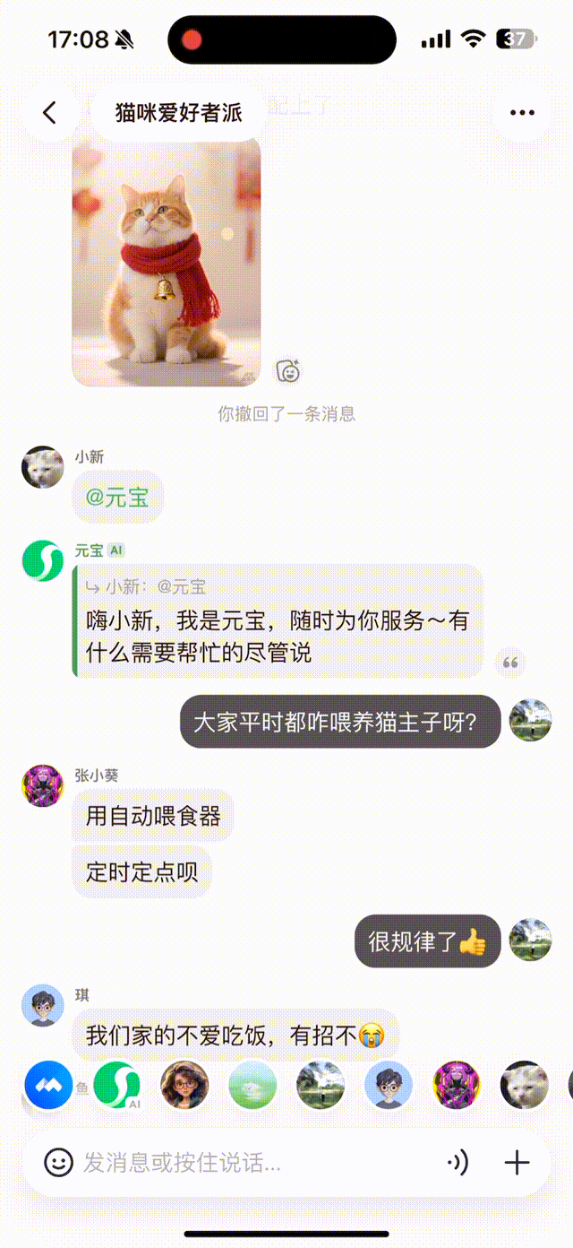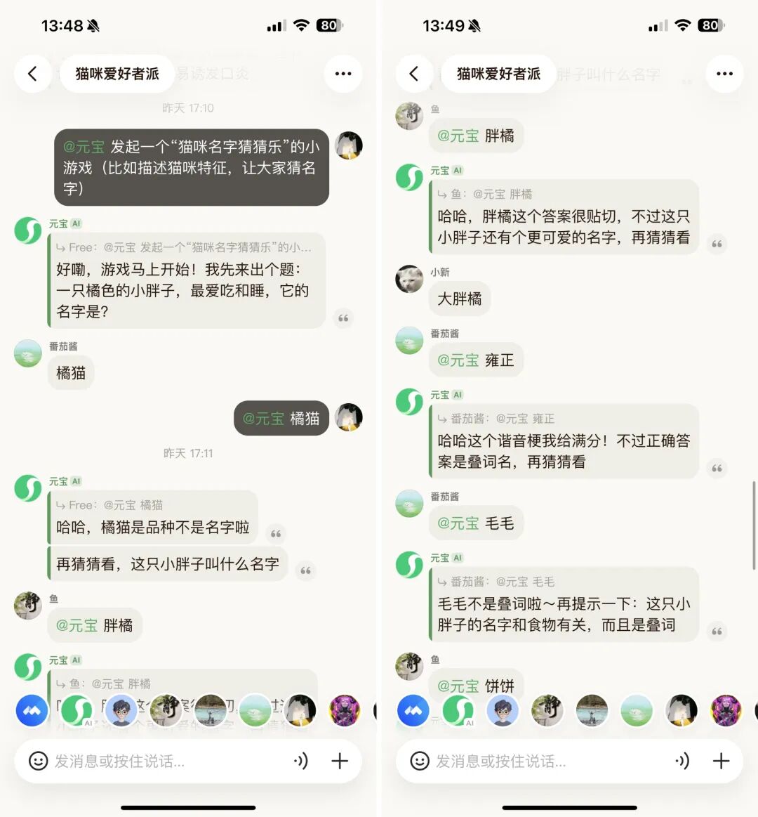 猫猫群、工作群、家族群……元宝的控场、整活能力挺带派