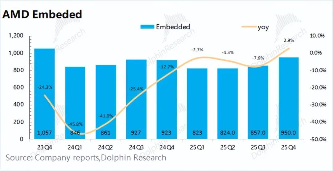 2)嵌入式业务:公司的嵌入式业务在2025年第四季度实现收入9.5亿美元,同比增长3%,其中多个终端市场需求的回暖提供了支撑。