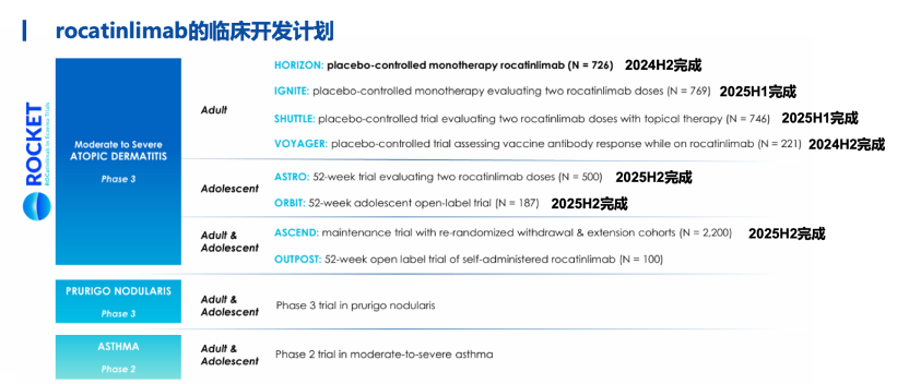 单纯从临床探索来看,rocatinlimab是成功的。2025年,安进便宣布IGNITE、SHUTTLE两项三期临床成功。