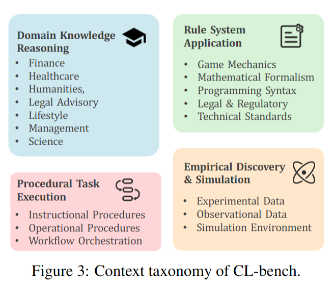 这四类场景基本覆盖了人类在现实工作中遇到的主要学习情境,而CL-bench又把这些真实场景搬进了评测体系。