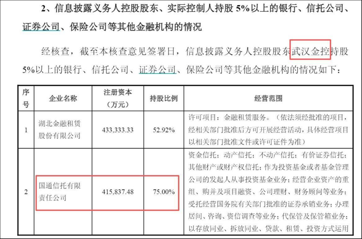 股权穿透显示,国通信托由武汉金控持股75%,而武汉金控正是此前有意接盘良品铺子的武汉长江国际贸易集团有限公司(长江国贸)的母公司,二者同属武汉市国资委控制。
