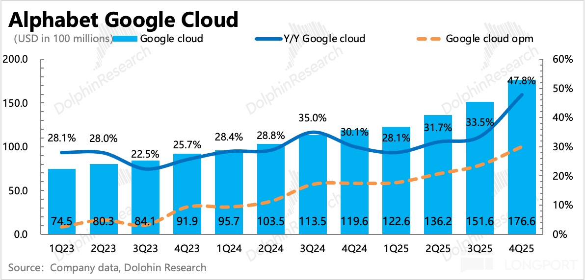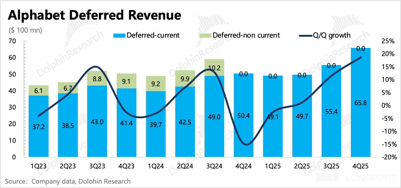 云业务是谷歌 AI 重估中的关键支撑,从前瞻角度而言,市场也更关注积存订单的增长情况。