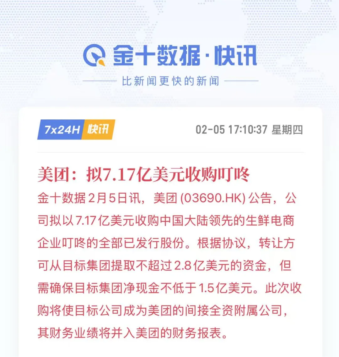 值得注意的是,今年1月12日,反垄断机构已对外卖行业的竞争行为展开调查,美团和阿里巴巴股价当日分别上涨6.6%和5.3%——市场普遍预期监管将遏制补贴大战,但这也意味着监管层对本地生活领域的并购审查可能趋于严格。