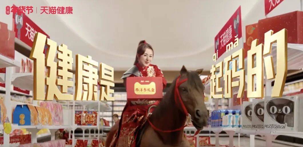 拿天猫健康来说,当形象与品牌0相关的骑马官马丽、仙女教母马丽反复喊出“健康是起(骑)码(马)的”口号,观众不仅毫无预期违背的惊喜感,就连曾在春晚大杀四方的马氏招牌喜剧味儿也荡然无存了,且此片并未传递任何有品牌独家标识的健康理念。