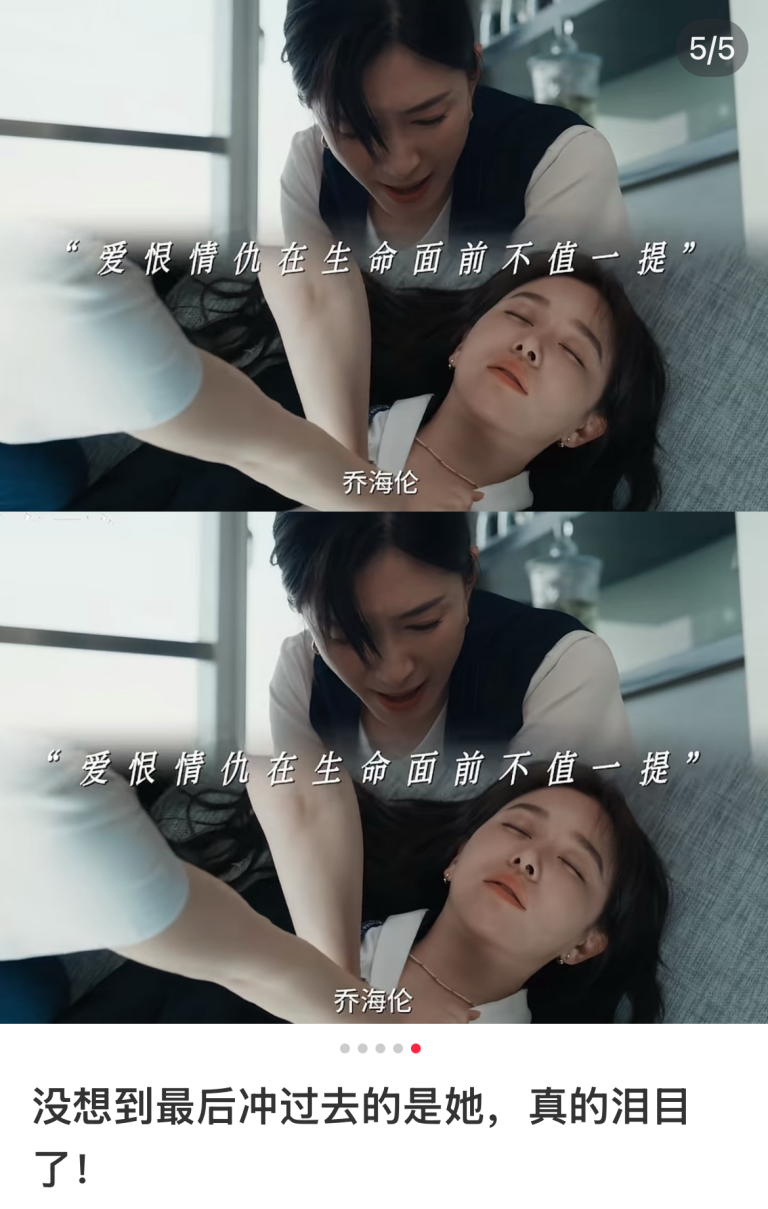此外,曾经最能激发观众肾上腺素的“正邪对垒”失效了。当乔海伦主动挑衅正宫赵玫被怼,崩溃喊道自己当情妇只为保住工作时,弹幕都在心疼小三。后面的剧情里,乔海伦因过度加班晕倒,赵玫第一时间上前为其实施急救的情节更是深深感动观众,有人甚至磕起这对“对抗路CP”。