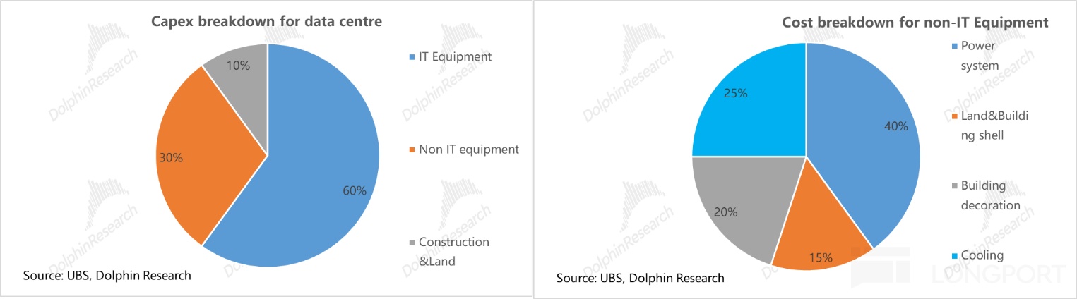 参考黄仁勋口径,1GW数据中心容量建设成本约500-600亿美元(含芯片系统约350亿美元),海豚君取中值 550亿美元/GW(当数据中心全为英伟达芯片)。
