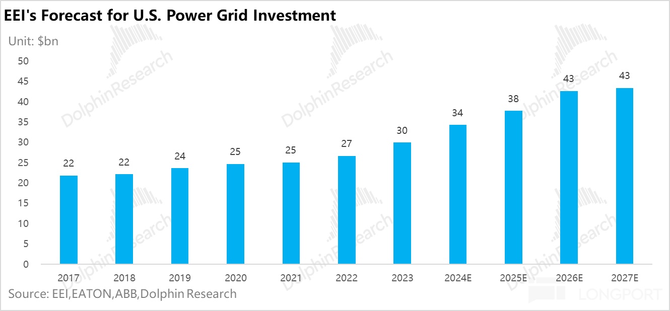 由于美国用电量在2000年后增长缓慢,而本土电力设备制造产业空心化(变压器等关键部件高度依靠进口,且面临关键技工短缺问题),美国电网所有权分散(以私营企业为主),导致美国对于电网投资长期位置较低水平(过去10年年均约200亿-300亿美元,2024年才突破300亿美元)。