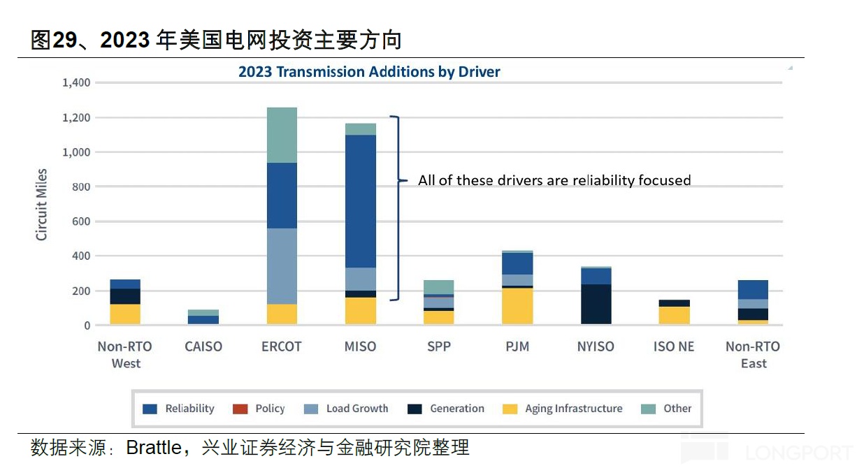 且投资方向也偏向投资主要流向 “老化基础设施更换” 和 “巩固电网可靠性”,由 “负荷增长” 驱动的扩容性投资占比极低。