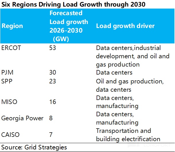 北美电力公用公司大幅上调了未来5年的峰值负荷预期,规划总增量高达 166 GW。在这波电力“超级周期”中,数据中心是绝对的主导力量: