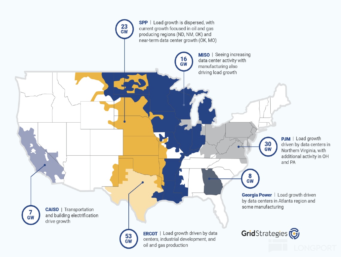 b. 其次是工业/制造业回流(新增30 GW),以及终端电气化(新增约30GW,主要由住宅电气化-如供暖热泵,及电动汽车设施等领域驱动)