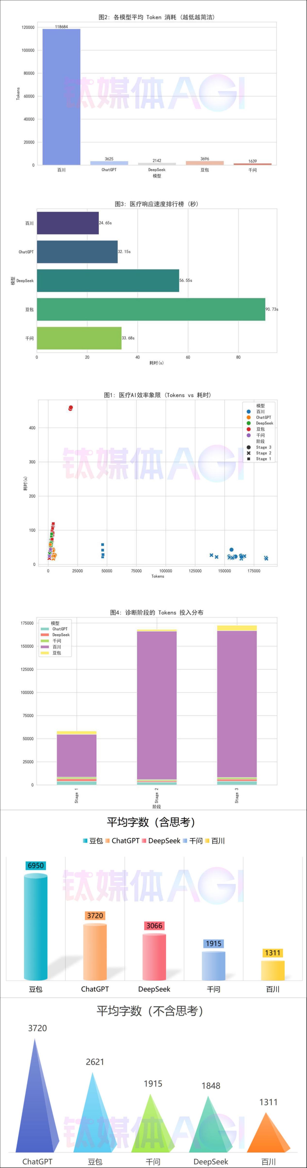 至于阿里千问,妥妥的性价比之王。它的Token消耗最低,响应速度排第三,总回复控制在1900字左右。内容紧凑、准确,基本没啥废话。很适合分秒必争的临床辅助决策。给到夯。