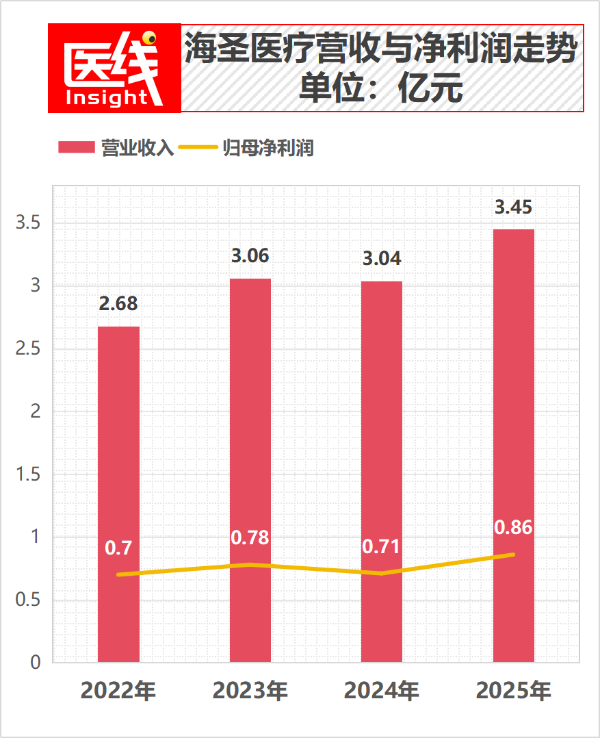 翻开海圣医疗招股书,虽然财务数据体现的收入规模并不算大,但表现十分稳健:其2025年营收3.45亿元,净利润8582万元,主营业务毛利率常年维持在50%以上。