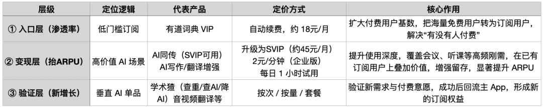 现在有道AI订阅收入来源大致可以归为以下几个层级: