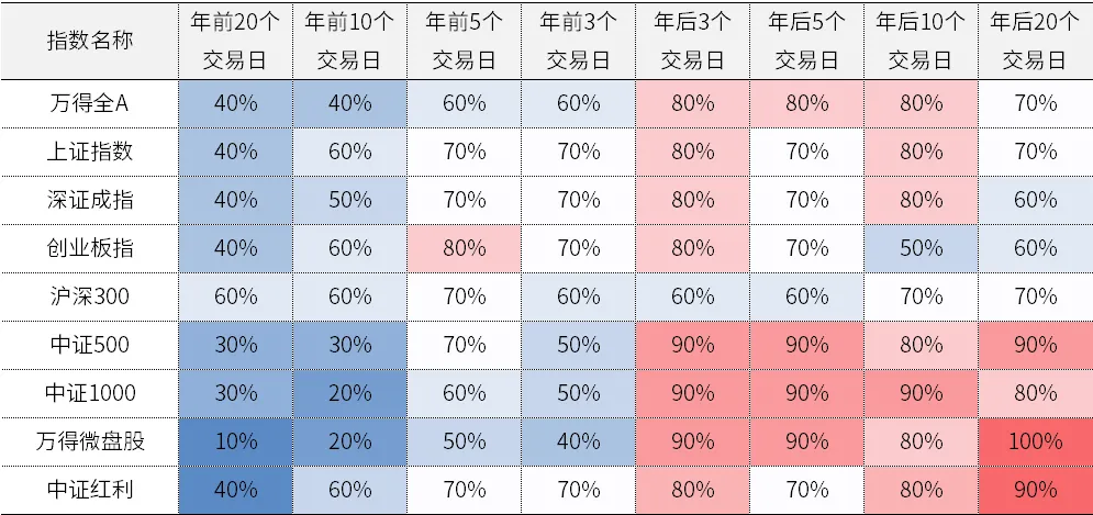 近10年A股主要指数春节前后上涨概率