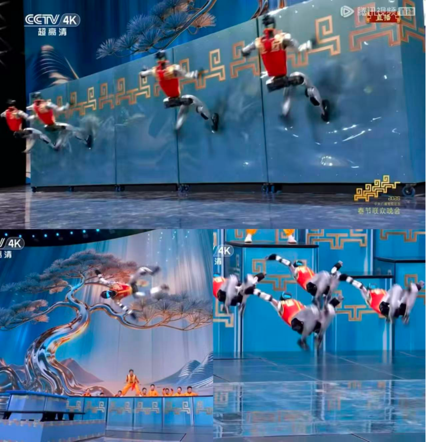 如果说仿生机器人蔡明是细思极恐的惊艳,那宇树带来的武术表演,就是炸翻全场的震撼。