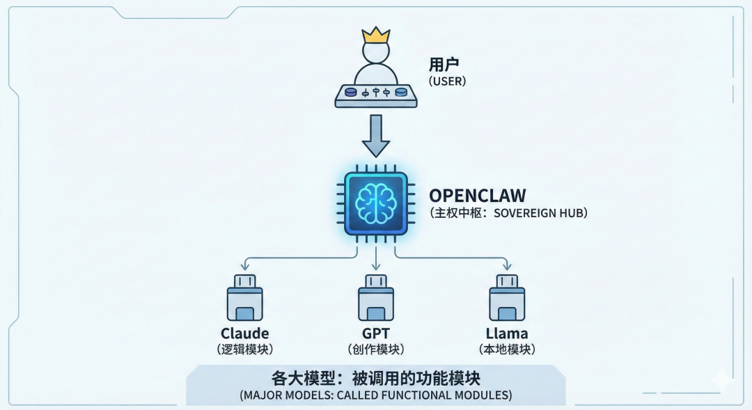 上面这个是AI做的示意图:用户会成为那个王者,OpenClaw会变成王者手中的权杖,剩下是受它指挥的AI。看着特别合理,但这是对过去几十年分工模式的逆反,用户第一次真正获得主权。(现在可以讲,我们希望它行,最终如何还有很长的路要走)