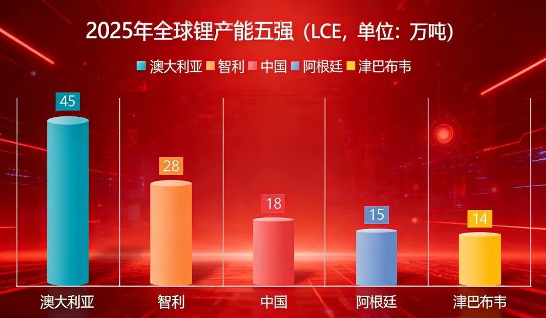 2025年全球锂资源供应呈现五方领头的态势,且各有特点。