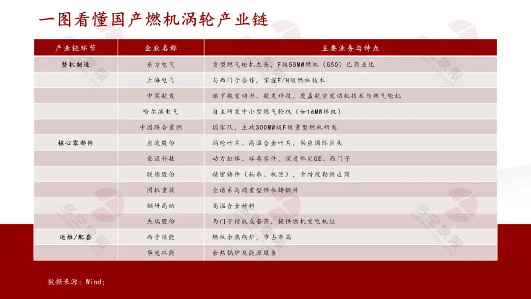 全球燃机需求的井喷,为中国产业链企业打开了历史性窗口。这些企业按照受益逻辑可以分为三个层次:整机制造、核心零部件供应商、配套服务商。