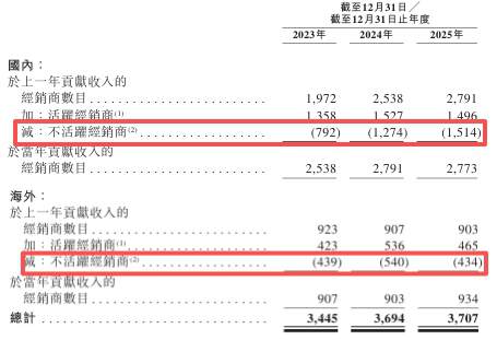 其次是对经销商的高度依赖与渠道动荡问题。2023年至2025年,公司通过经销商实现的收入占比分别达87.8%、84.3%及83.1%,超八成收入依赖渠道外包。