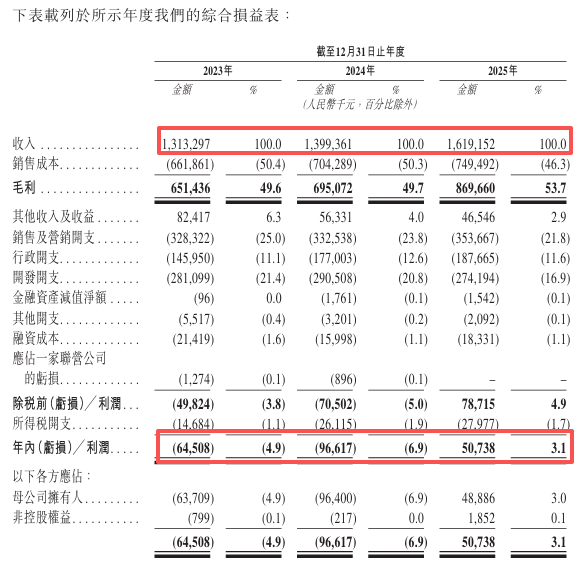 最关键的突破在盈利端。2022年至2024年,公司累计净亏损3.87亿元,但亏损幅度逐年收窄。2025年成功实现净利润5073.8万元,经调整净利润达1.29亿元,净利率3.13%,正式告别持续亏损状态。