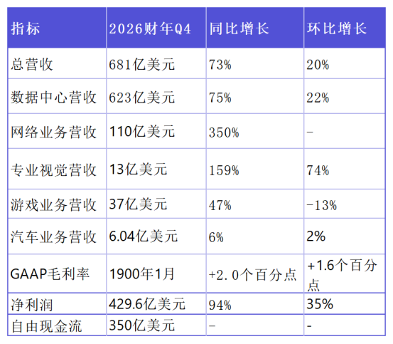 2026财年最后一个季度,英伟达营收达681亿美元,同比增长73%,远超市场预期的662.3亿美元。