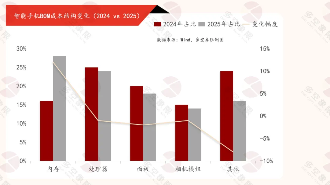 以往手机厂商应对成本上涨的惯用手法是“减配降价”或“加量不加价”——通过在其他器件上缩减成本来平衡整体BOM。但内存是所有机型都绕不开的刚需,且短期内没有替代品。